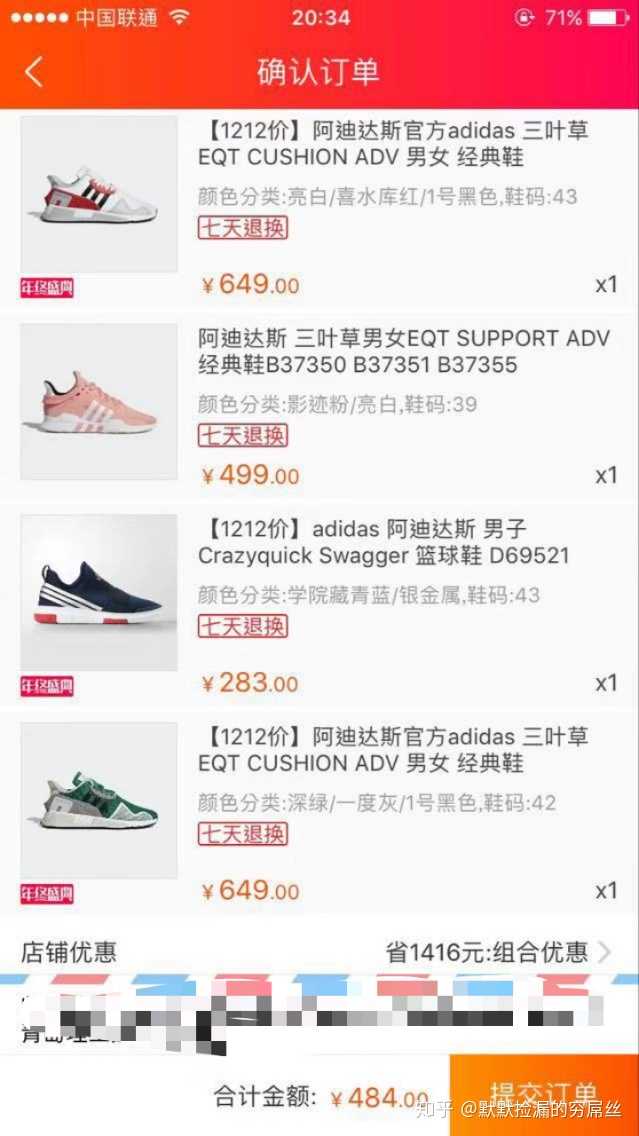 假设阿迪有3件8折,店铺券1000-500 然后津贴满300-30,那么你只需要凑单3件,凑满1000,最后实付价格就是1000*0.8-500-90=210 看懂了吗?