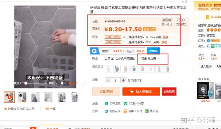 再看这个脏衣篓,有一定的体积,需要考虑仓储以及物流计价,打包也更耗时,居然还能做到8.2包邮,让人不禁有点好奇,点开一看。