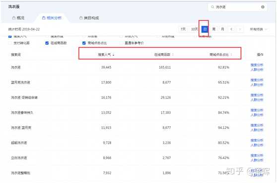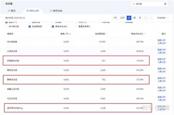 这里可以看到洗衣液竞争还是相对比较大的。那我们再往下翻: