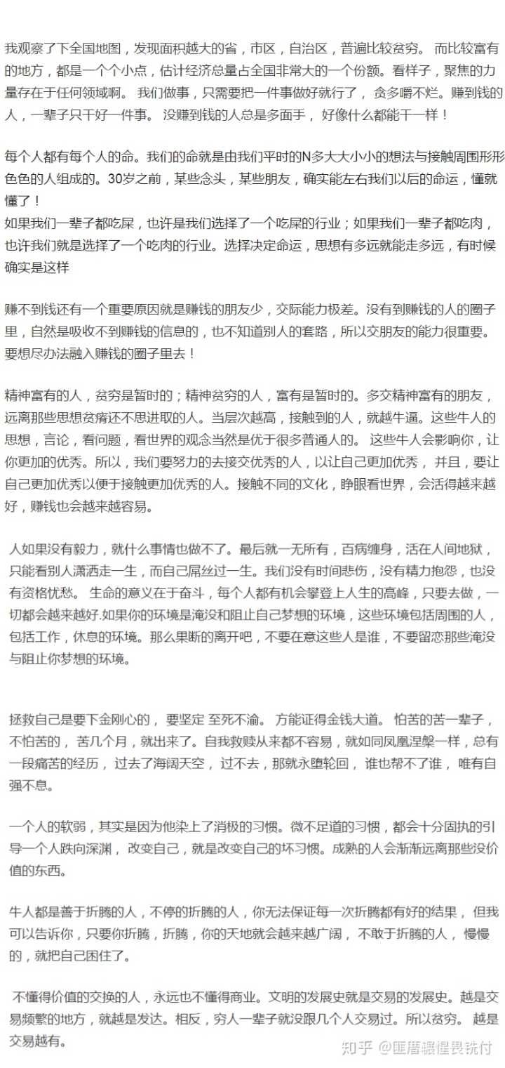 品行好的人,不可能穷的,他会为了自己的父母、妻子奋斗。会为同事、公司奋斗。