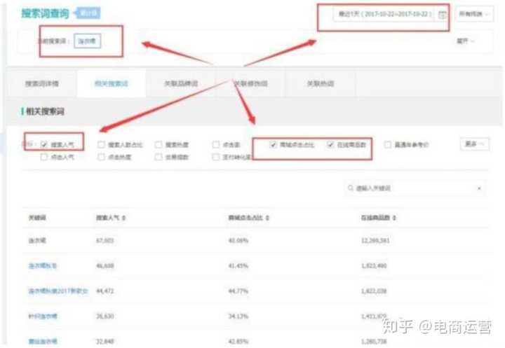 单天数据,下面的指标只选择这三个就行了,搜索人气,商城点击占比,在线商品数,复制下来,统计到表格里