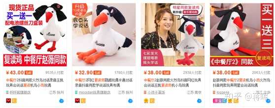 再比如最近新出的一档综艺节目《中餐厅》,同款复读鸡,会学舌还可以放歌,淘宝也已成爆款。