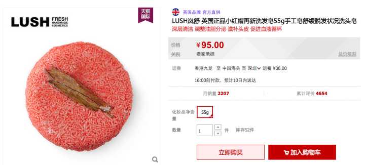 其实这些产品呢,极少数的确与国外差不多价格,比如lush小红帽,香港港币价格是110还是115,其实与这个95差不了几块钱,但如果找代购,还需要付给代购过关费,代购费等等,而且代购中也有很多卖假货的(我真的从来不敢相信代购。。都是特别熟的人我才敢找)