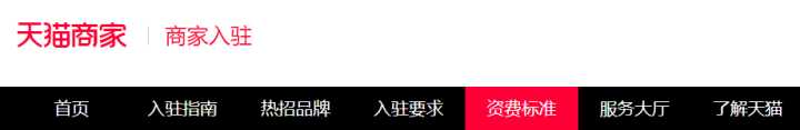 天猫首页下拉到底部,商家入驻,资费标准。