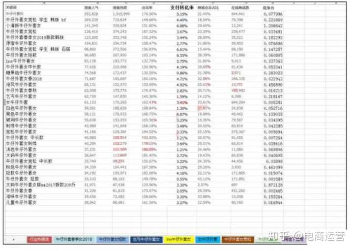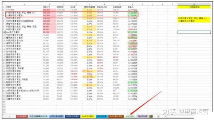 我们可以新建一个Excel表格,将生意参谋导出的关键词复制到表格里,然后通过上述指标,筛选出合适我们宝贝的关键词进行组合。