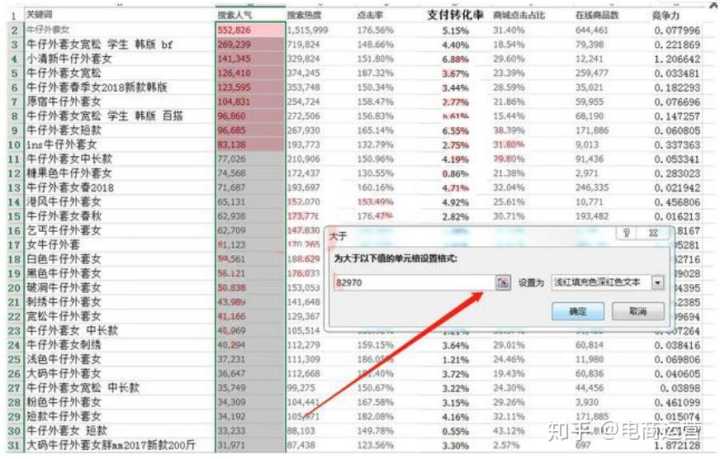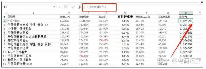 接着筛选,公式:竞争度=搜索人气*点击率*转化率/在线商品数*10000。