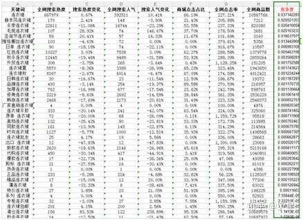 我们宝贝里面的关键词它获取流量的能力跟人气是没有直接关系的。当然除了排在前面销量比较高的这个除外。搜索人气/在线商品数=竞争度。竞争度的意思是在一个固定的环境里能得到多少的搜索人气。一般来说竞争度越大,你获取流量的机会也就越大。