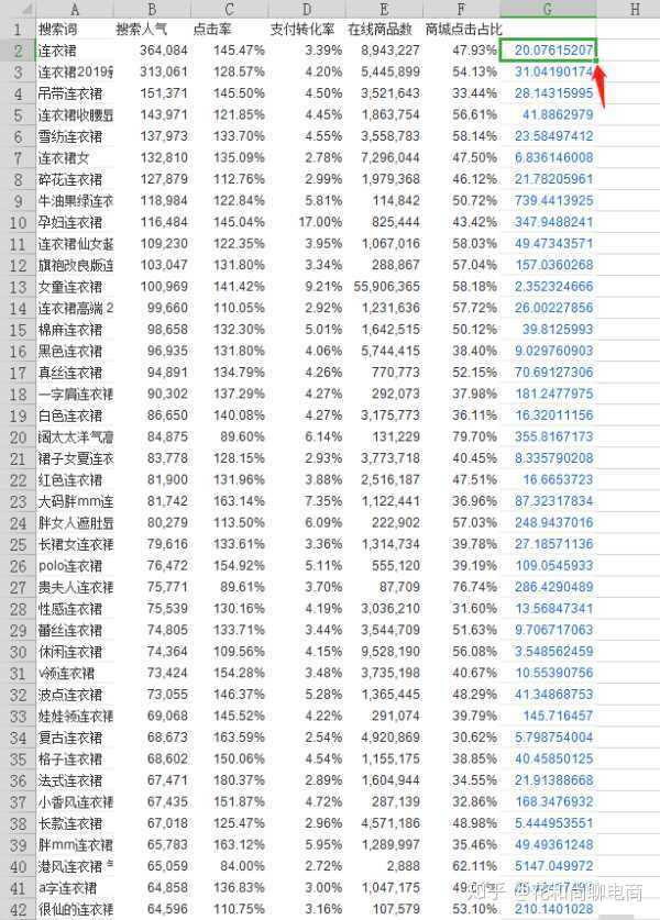 ②支付转化率:搜索这个关键词的人成交了多少——数值越高越好