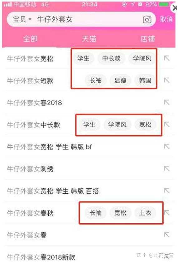 ④商城点击占比:整个淘宝网中搜索这个关键词进入天猫店的比例——C店:越低越好,猫店:越高越好