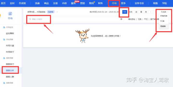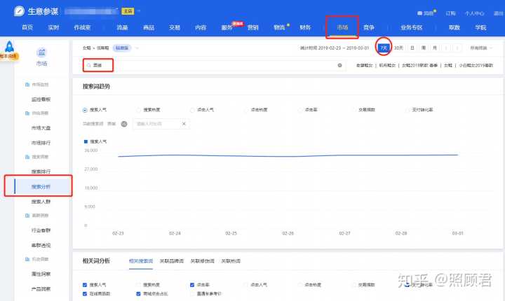 2)根据这些核心词去生意参谋,市场洞察,搜索分析去查找,选择七天数据