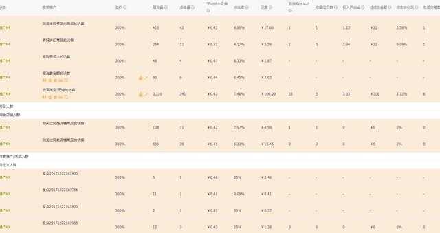 这些人群我已经没办法溢价了 只要溢价到%10整体直通车展现量和花费会突然飙升,前期的话可以提高溢价快速的测出人群,后期的话可以看情况优化降低,溢价删除一些没必要存在的人群