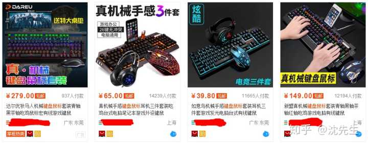 比如说这种,你说第一家店铺有啥优势没有?答案是尽管他排第一,但却没有半点优势,不是说能让人看到就有优势的,因为你的对手过于强大,1000不到的销量在上万销量的店铺面前,是没有任何优势的,基础销量差距太大。