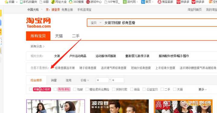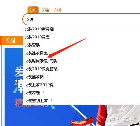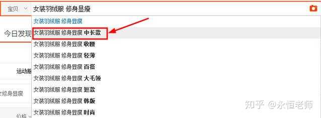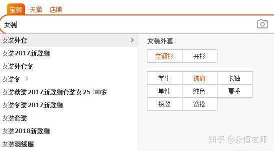 如上图:搜索女装,下拉出现了(女装外套、女装2017新款潮、女装外套冬…..)这些都是热门关键词,相对来说也是大词。对于新开店铺,我们要根据自己店铺产品,选择一些长尾词