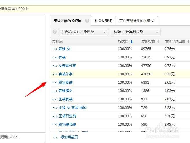 经过几次的筛选之后,会遇到这种一种情况,我们在写标题的时候往往会发现,对于一些搜索人气和关键词倍数特别好的词语,会发现这些词语字数特别多,整体看上去特别长,像“背带裙套装女2018新款 时尚爆款”这类词语,这类词是淘宝系统根据大家的检索习惯来推荐的,并不一定是客户主动搜索的,所以其实我们一般是不用的。
