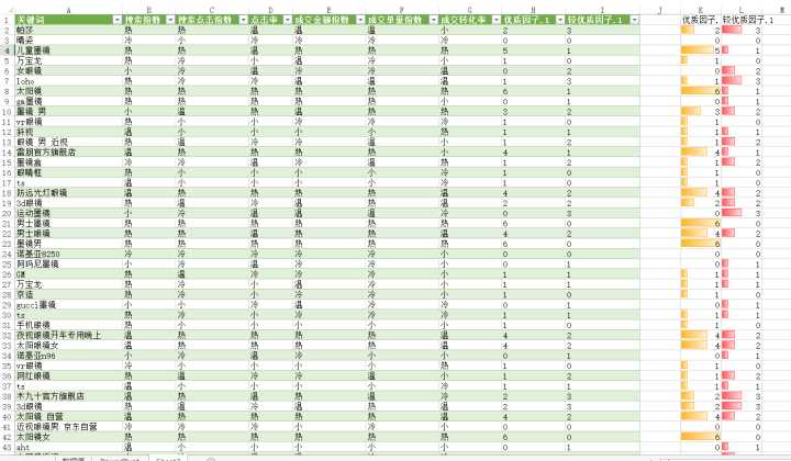 那么,如果关键词的“热”的数量越多,是不是意味着相对应的指标的真实数据都是比较大的。那么当一个关键词的各个指标的数据都是大的时候,是不是意味着这个关键词就越优质。