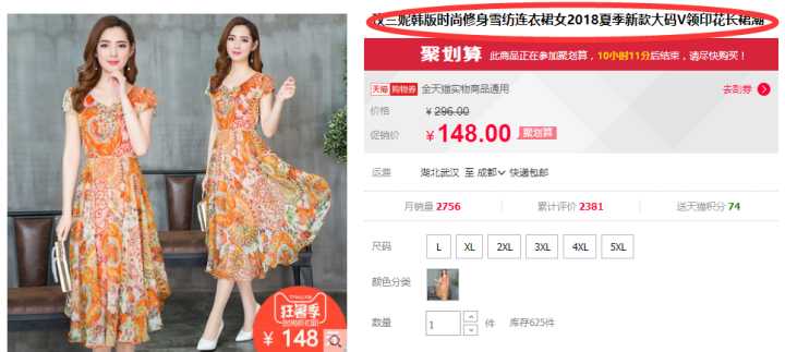 以这个产品为例,我们可以看到这个产品为“背带裙”,也可以叫“连衣裙”。