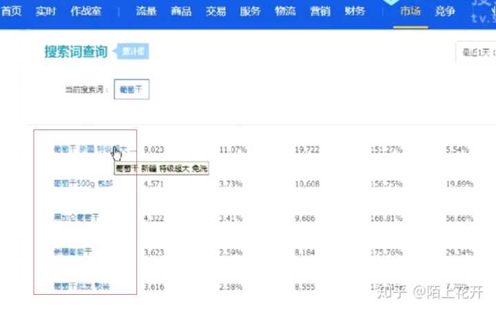 在线商品数即抢这个关键词的同类型产品的多少,商城占比即天猫店铺在这个关键词里面的搜索占比,如果你是c店那么你去抢商城占比高的词不是找虐吗?你去用几百万个产品同时在抢的词不是做炮灰?