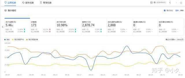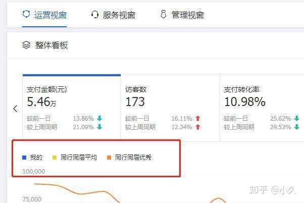 记住层级是根据近30天的支付金额来排名的,层级交易额每天变化是在降低还是在提高的,可以反映出店铺运营的目前现状;运营视窗就比较重要了,整体看板是把店铺整个数据进行的整合分类,我们主要看支付金额、访客数、支付转化率、客单价,跟我们刚刚上面讲到的交易额层级是一致的,展示的都是前一天的店铺数据,往后翻当下的前一天所有数据都能看得到,每个对应指标下面都会有你店铺数据的行业对比趋势。