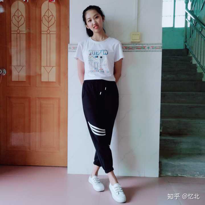嘻嘻暑假在老家拍的短袖+运动长裤佣共60,小白鞋送拍(接一整套拍起来炒鸡方便)