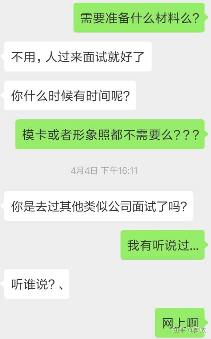 于是我就上某8上找兼职了,看到很多是托管老师,感觉不太适合自己所以没有投简历。然后看着看着就看到一个模特兼职,就是专门给淘宝或者一些商家拍照片(感觉自己挺漂亮的我就开始自恋了 ♀️)于是看了要求,身高155以上(我158)对化妆品不过敏,无明显的纹身,形象好,喜欢拍照,空余时间1到3小时。我的妈呀这不是为我量身定制的工作嘛! 我点进去看了2秒不够他就私信我说,可以加微信详细聊天,我也没多想就直接加了那个人。一开始我们就聊聊这份工作,然后他就要求我把身高体重还有照片发给他(模特嘛!这是正常流程)然后我发给那个人,聊了很多最后他让我去面试,说面试过了就可以在常居住的地方接工作,整个聊天过程都非常愉快,她也非常温柔,甚至还会发语音给我解释一些东西。