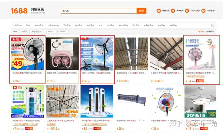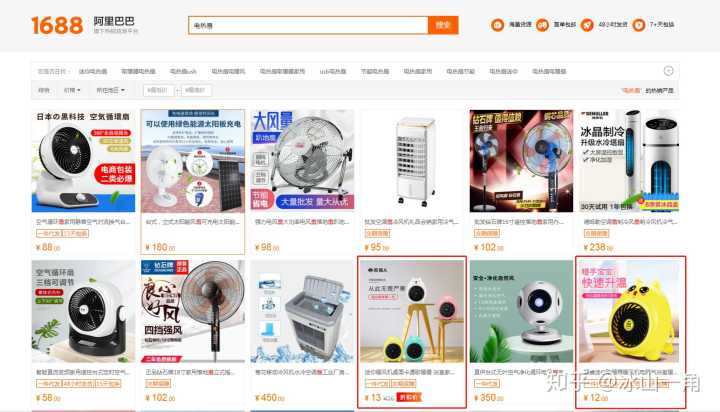 就好像夏天的产品在阿里巴巴你可以在找“空调扇/电风扇”等一件代发,利润基本可保持在30-80元;