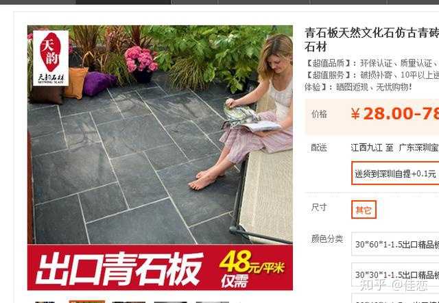 这是一个做青石板的商家,目标用户主要是那些想装修家庭院子的人。一个月几十万的流水,利润还可以。