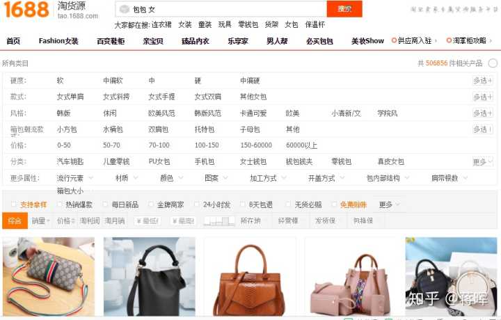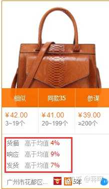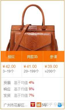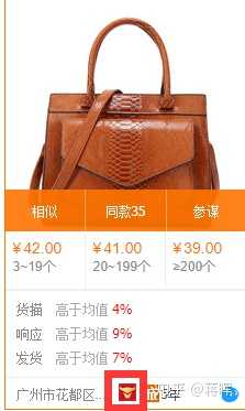 比如,选好这个款式的包包,可以看出有35个同款,可以再去对比同行,看价格、销量。