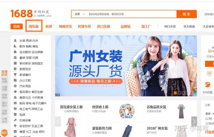 2)找到词之后,打开阿里巴巴,并注册登录,点击“淘货源”版块
