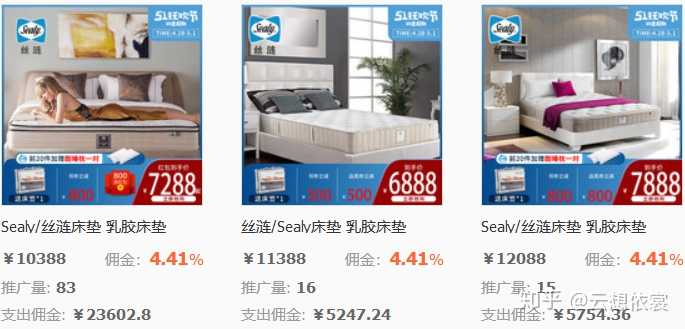 支出佣金÷推广量,我们很容易算出这款床垫的单品佣金,要知道,这东西一般都是2张起!