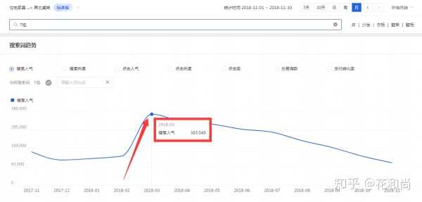 当然,两者的市场潜力也不同,如下图,T恤这款产品在行业旺季最高峰整月的搜索人气是36万