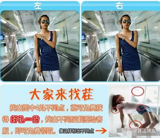 停留时间越长就越证明你的宝贝受买家喜欢,所以我们要绞尽脑汁提高页面停留时间,除了视频以外,我们还可以在页面添加一些大家来找茬等一些吸引人的图片,如下图