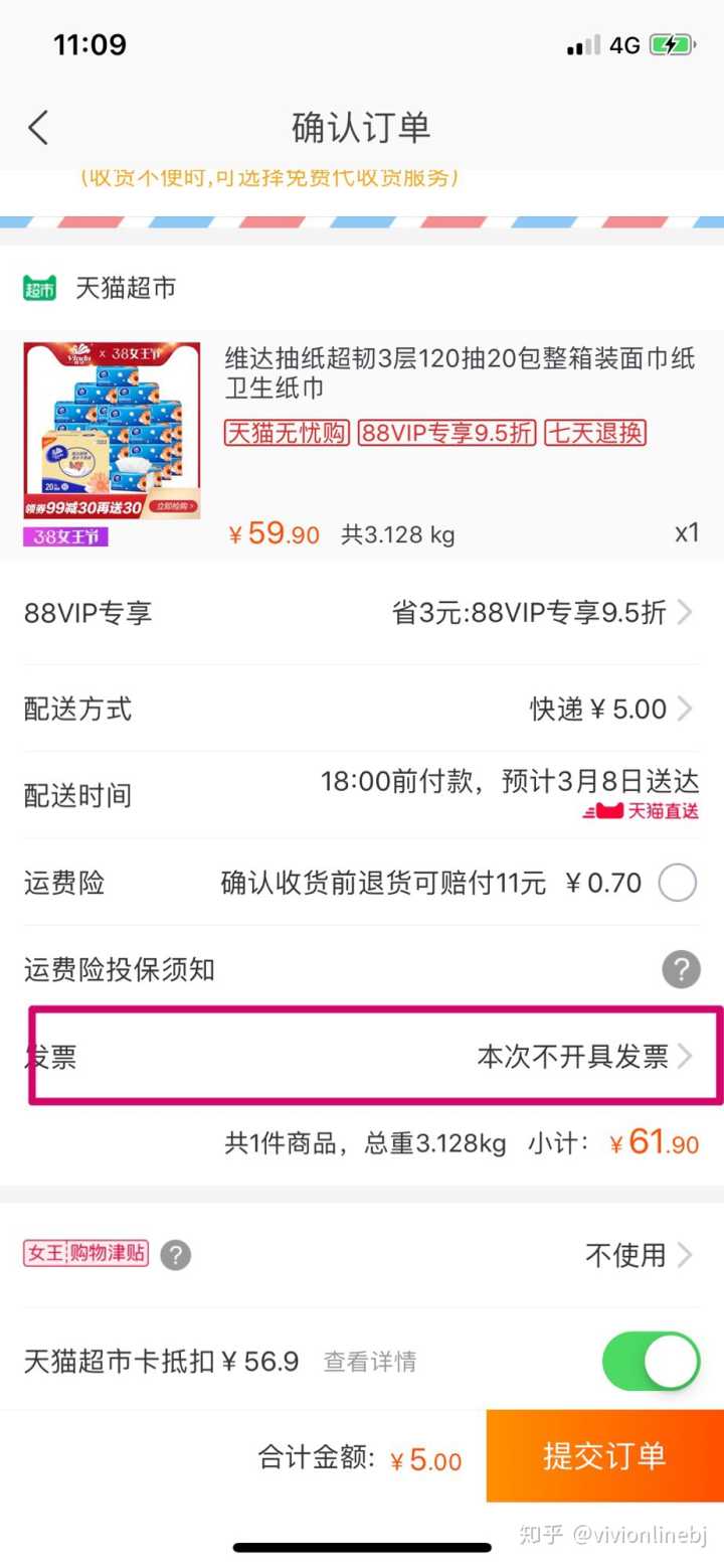 天猫超市什么的下单可以直接勾选要开个人发票
