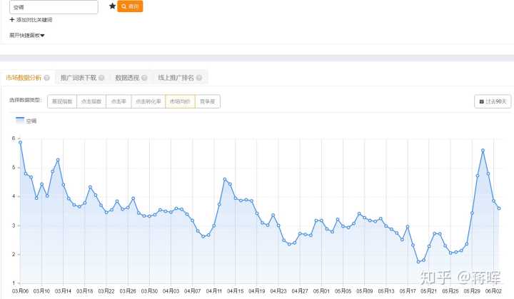 一般,新手卖家可以先看其他卖家都是使用的什么推广手段,做一个简单的调查和预估,比如直通车的点击花费。(比如最近空调的点击花费在5块7左右)
