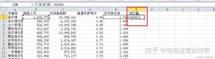 5.根据搜索人气和支付转化率相乘算出成交量,如下图所示: