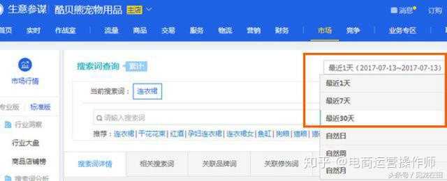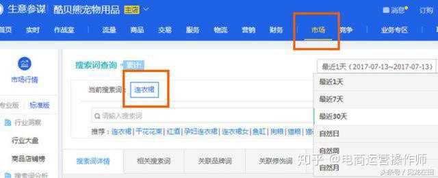 1.打开店铺后台订阅服务里的生意参谋——点击市场一搜索词查询—输入连衣裙,同时勾选搜索人气、在线商品数、支付转化率3项指标,如下图所示: