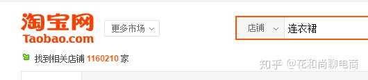 可以直观的看到,淘宝上售卖女装的店铺共计1160210家。