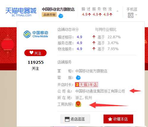你说的那个店我去看了下,可以看到公司名字的。是移动的