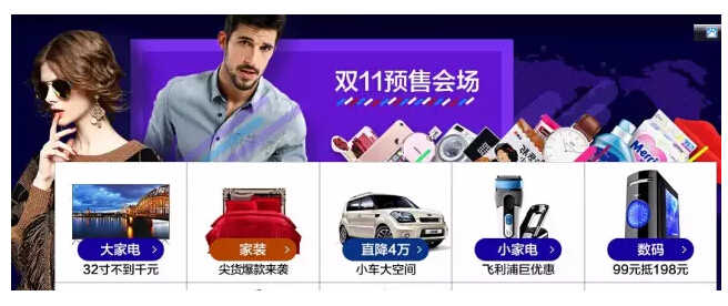 以主会场的预售会场版块为例,把家具、数码、女装、鞋靴、母婴等品类,通过预订方式进行售卖,同时配以降价手段形成该版块。其他版块可以依此类推的进行快速的分解学习!