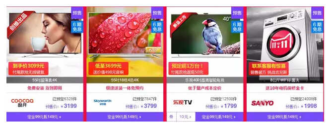 与定金预订随之而来的是定金膨胀玩法,即为定金*元抵*元,例如乐视TV的定金元99低149元。