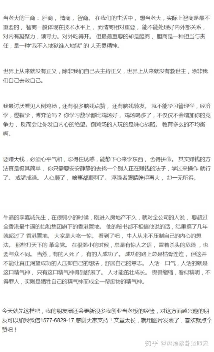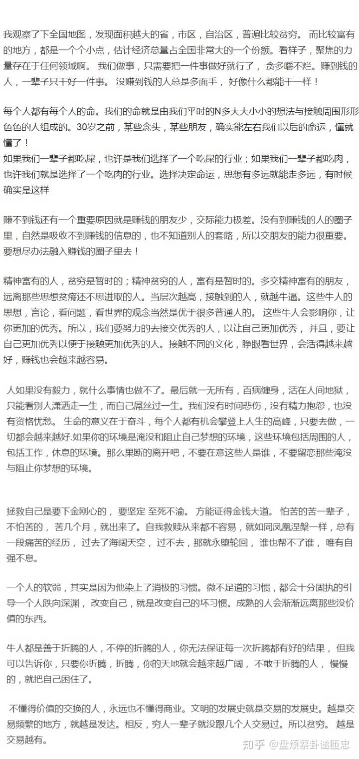 现代社会,你有一支烟,能做到一人抽一口,别人就跟你混。一 个更深的大方表现就是,赚钱了,就到处宣传自己赚钱了,不藏着掖 着。闷声发大财的人,当不了老大。必须得学会带动周围的人听你指 挥,给你干活。我在我的圈子里,就经常晒我的收入,就会有很多人 想跟我学,想让我带。部分朋友还说跟我混,不要工资。