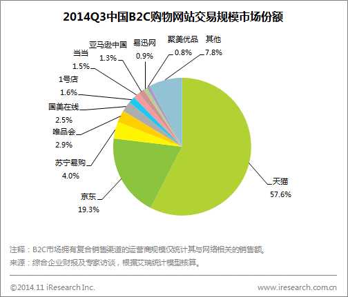根据艾瑞咨询公布的数字, 2014 年第三季度,亚马逊在中国电商排名仅有第八位,不但逊于天猫、京东和苏宁易购,甚至远远低于国美在线、1 号店等小电商。