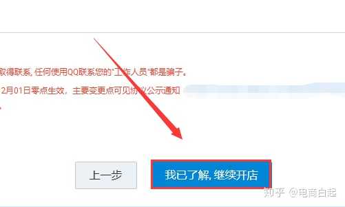 4、阅读完毕后,点击“我已了解,继续开店”。