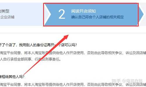 3、进入开店的页面,首先选择开店类型,阅读开店须知。