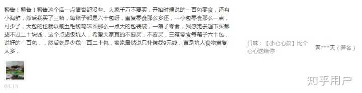 举个例子,零食大礼包千万不要去天猫店买,我就被坑过。