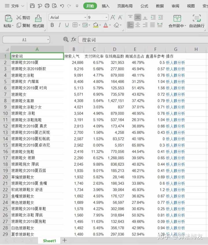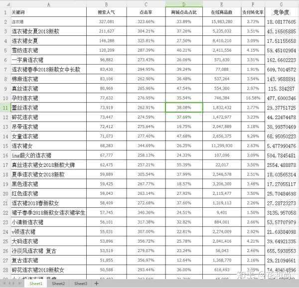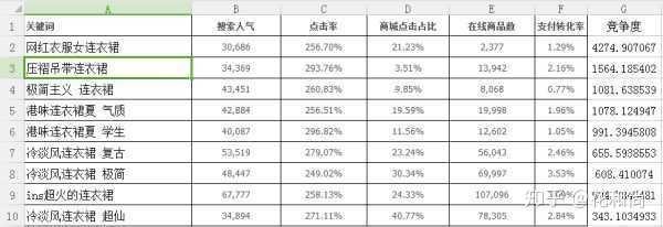 然后建立一个Excel表格,将背带裙相关的搜索结果都复制到表格,尽量多整理一些,