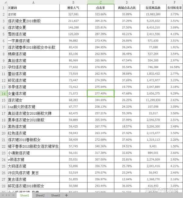 普通长尾词:2019新款连衣裙