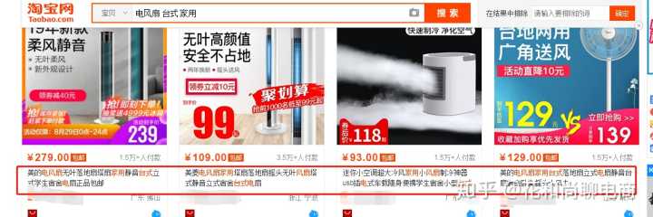 可以看到,展现出来的宝贝标题里都包含了这些词“电风扇”“台式”“家用”。如果说你标题里没有这些词,那么是很难被展现出来的。