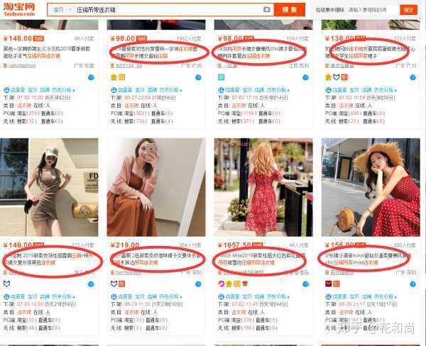 我们可以看到并不是所有的标题里都是“压褶吊带连衣裙”这几个词连在一起的。
