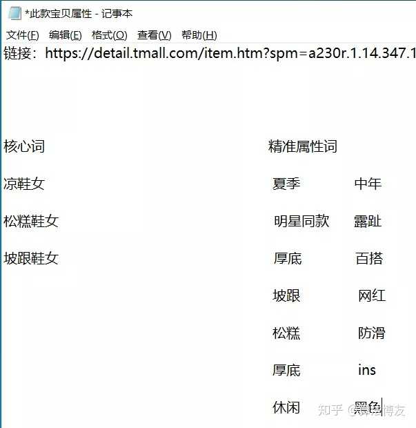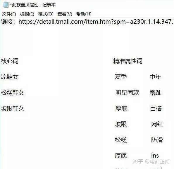 比如搜索到这个鞋子,跟我自己在做的产品很像,而且价位差不多,我就会把它的标题拆解下来发现它有哪些词,用一个txt文档记录下来。