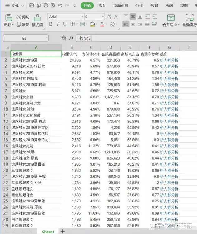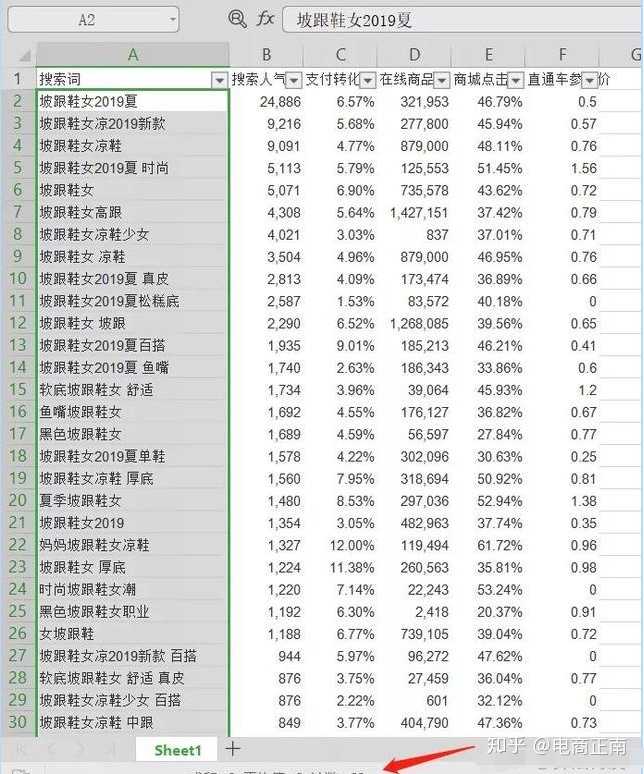 所以本案例中,最终确定的精准关键词就是“坡跟鞋女夏季 ”或者“坡跟鞋女休闲”或者“坡跟鞋女防滑”等等。这些用核心词+属性词组成的关键词,那么这些词是可以用来当精准关键词的!